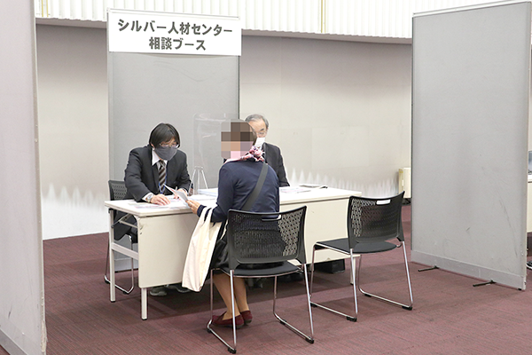 「シルバー人材センター」の方による相談ブースでは、参加企業の求人以外にも、数時間、週に1回だけの仕事など、みなさまの希望や生活状況を丁寧に聞き取り、実際にどのような仕事があるのか紹介しながら、働き方のアドバイスを行っていただきました。