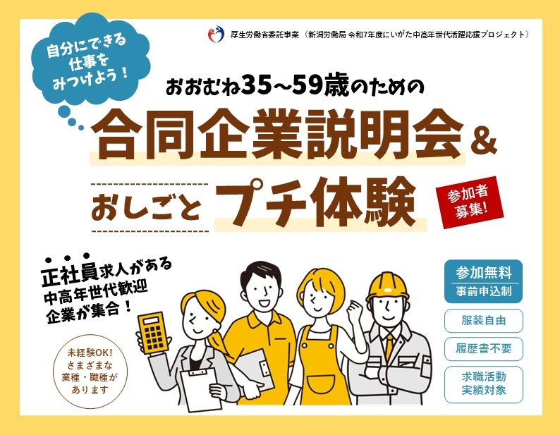 【上越市・長岡市・新潟市 2025年10月・11月】<ミドル世代向け>合同企業説明会&おしごとプチ体験 ※このイベントはにいがたアクティ部の主催ではありません