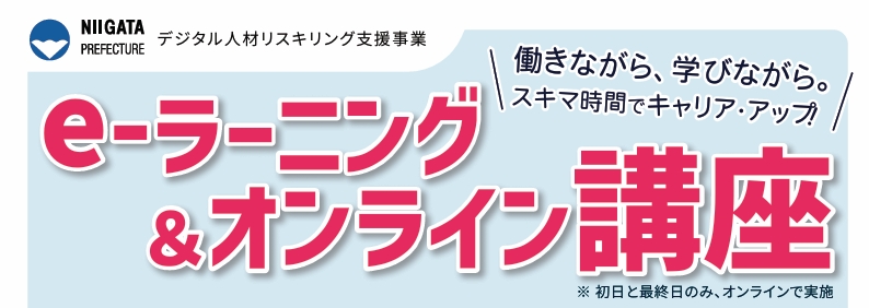 新潟県「デジタル人材リスキリング支援事業」では、多くの職業で必要となるデジタルスキルを身につけ、業務に直結するスキル習得を目指す、「ITスキルアップコース」を開講しています。