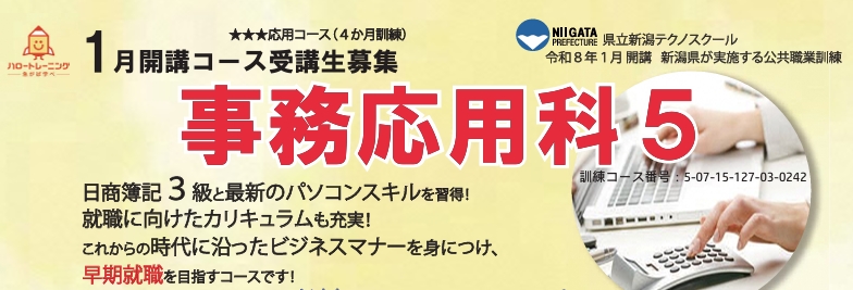 【新潟市 2026年1月~5月】公共職業訓練「事務応用科5」受講生募集のご案内