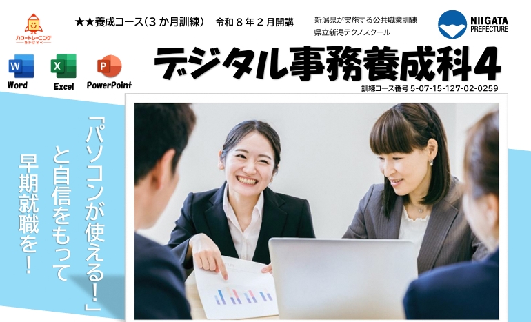 【新潟市 2026年2月~5月】公共職業訓練「デジタル事務養成科4」受講生募集のご案内